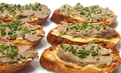 Heat gently and while the shallots and garlic are softening, add the liver and the spices, the bay leaf and the thyme.
